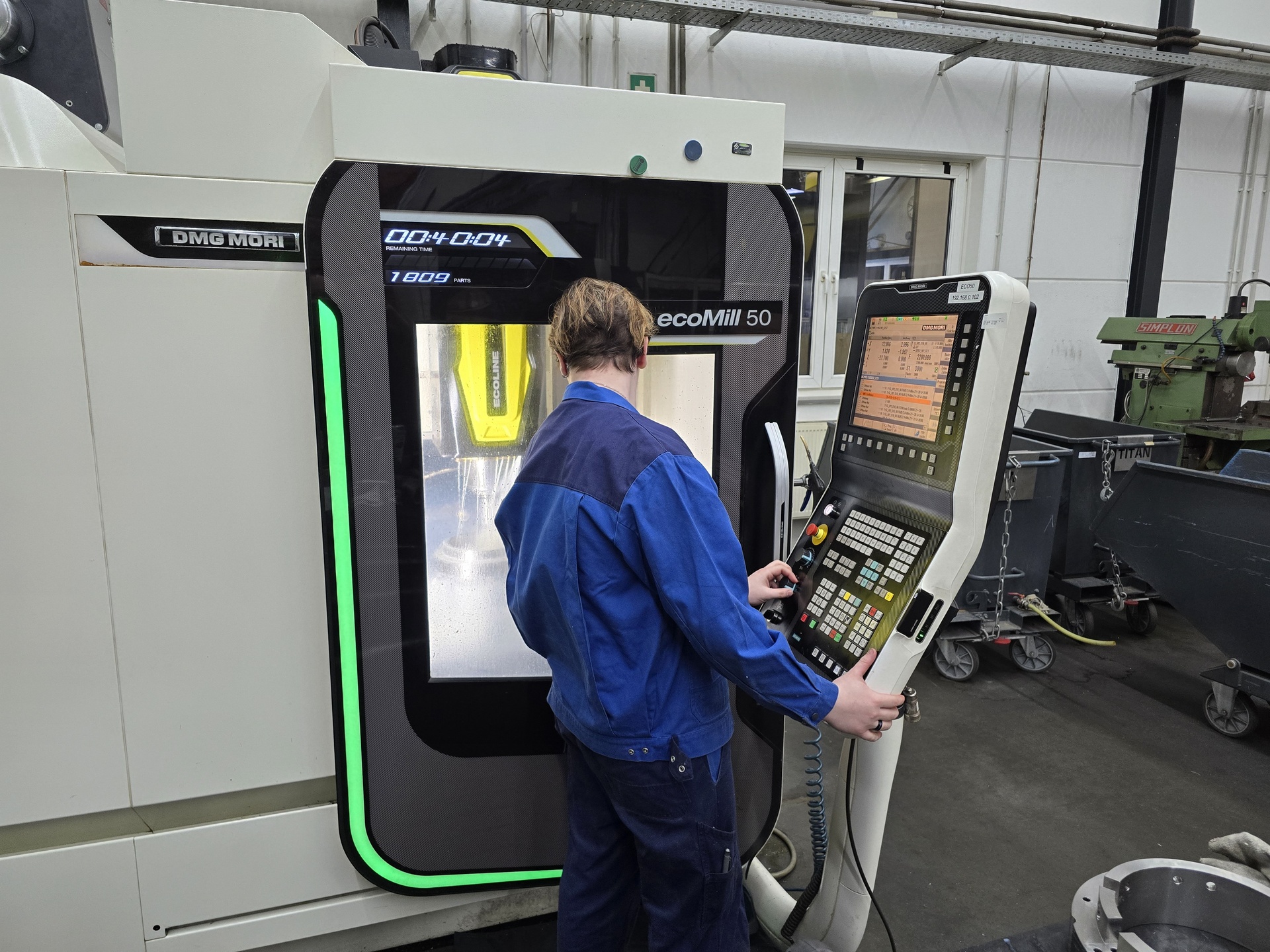 • Selbstständiges Einrichten, Rüsten und Einfahren moderner CNC-Dreh oder Fräsmaschinen